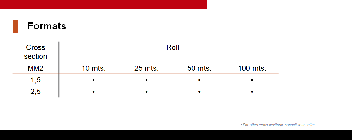 Insulated copper wire in PVC for fixed and indoor installations in low voltage.